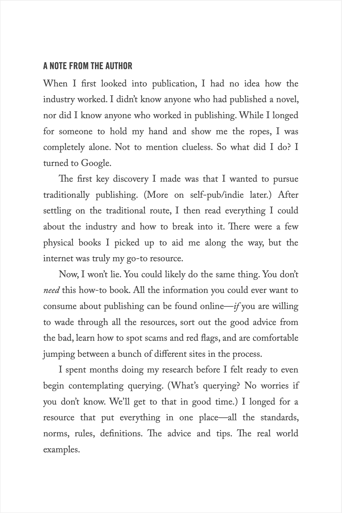 This 125-page digital guidebook walks aspiring authors through every step of the publishing process, from drafting a novel and finding an agent, to common contract terms and marketing basics—and so much more.